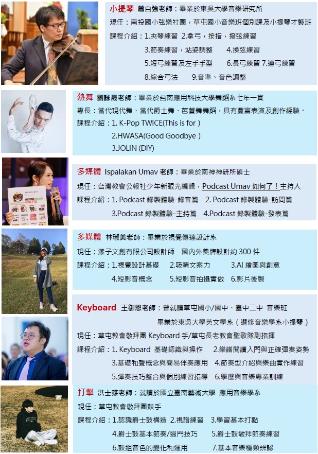 Keyboard 打擊 小提琴 影音媒體 熱舞